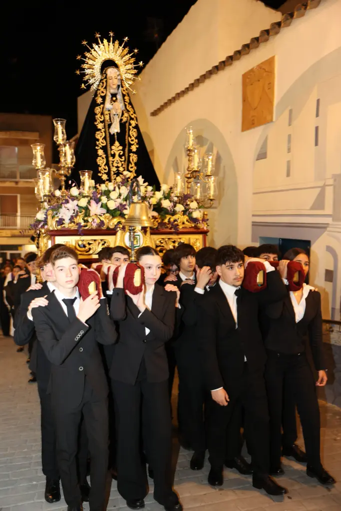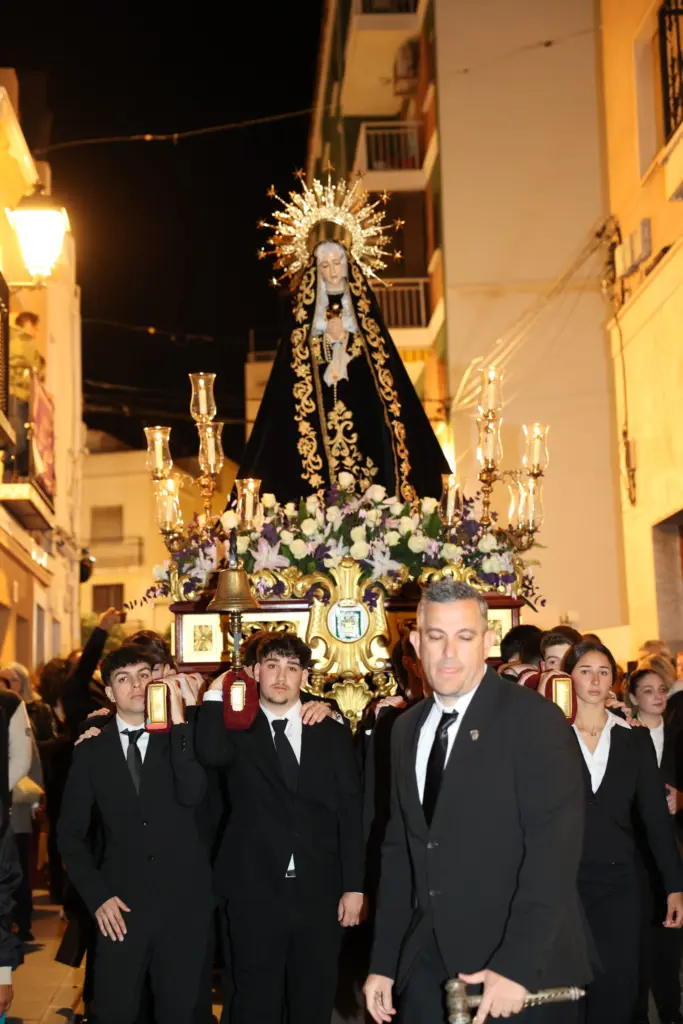 La procesión de la Virgen de los Dolores, portada por los jóvenes festeros del municipio, ha marcado este viernes el inicio de la programación de la Semana Santa de Calp. Unas celebraciones que se prolongarán hasta el 5 de abril con la siguiente programación: