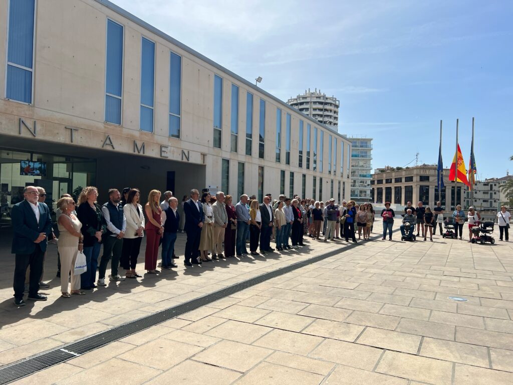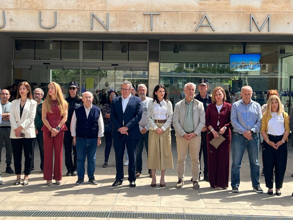 El Ayuntamiento de Benidorm ha guardado este jueves tres minutos de silencio en señal de duelo por el fallecimiento de dos operarios en un accidente laboral ocurrido el día anterior. La concentración silenciosa, celebrada a las 12 horas en la plaza de SS MM Reyes de España, ha estado encabezada por el alcalde, Toni Pérez, junto a miembros de la corporación municipal y numerosos ciudadanos.