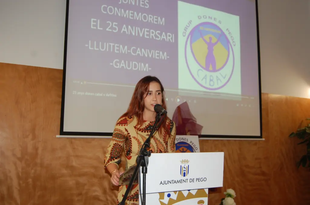 La cerimònia, amenitzada pels violins del Duo d’Arcs, ha projectat un vídeo de les activitats portades a cap durant eixe quart de segle i ha tingut un record en memòria de Reme Guardado, Maria Siscar i Amparo Mengual, abans de fer comparèixer a Pau López, Rosa Carrió i Remei Sendra com a pioneres en el moviment al municipi a qui han lliurat una samarreta actualitzada amb l’anagrama del col·lectiu. Circumstància que ha estat aprofitada per López com a primer presidenta per a agrair a l’artista Mónica Gómez Candela el disseny del mateix que va donar pas al moviment sorgit de la protesta cap a les actituds masclistes de l’alcalde de l’època. Així mateix, les tres han elogiat la tasca portada a cap des d’aleshores per Tere i Pura Ferrando que ha permès mantenir al Grup de Dones Cabal com referència de reivindicació de la igualtat en la societat pegolina de cara a les futures generacions, que té el seu vessant musical amb l’himne composat per Josep Cendra i Piera.