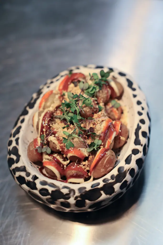 En l’apartat d’entrants, destaquen elaboracions com els torreznos Ca Ivan, les creïlles braves amb un toc oriental o els canelons cruixents de galta amb crema de moniato roig i reducció de Pedro Ximénez, reflex d’una cuina que busca reinterpretar la tradició des d’una perspectiva actual.