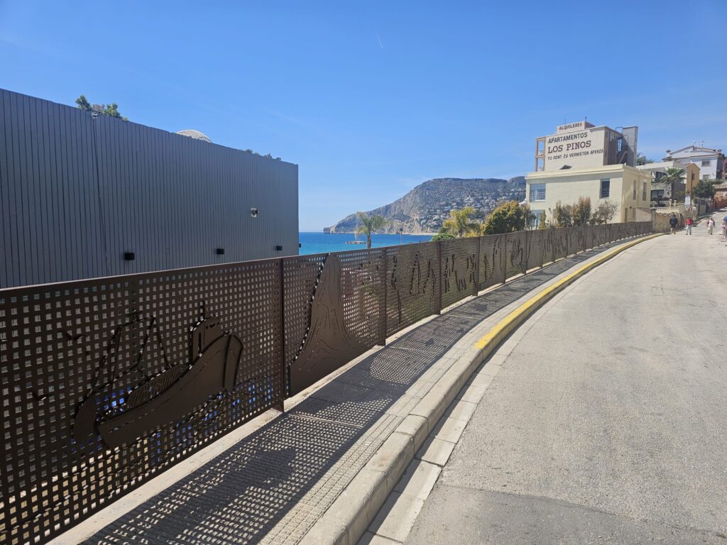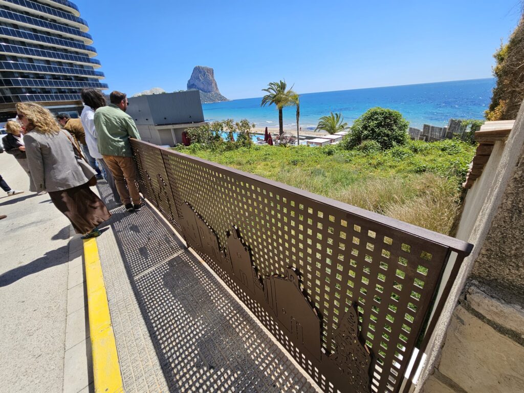 L’alcaldessa de Calp, Ana Sala, ha inaugurat este matí l’obra, de 54 metres lineals, confeccionada en ferro galvanitzat i pintada al forn. L’acte ha comptat també amb la presència de l’artista de Xàbia, Toni Marí.