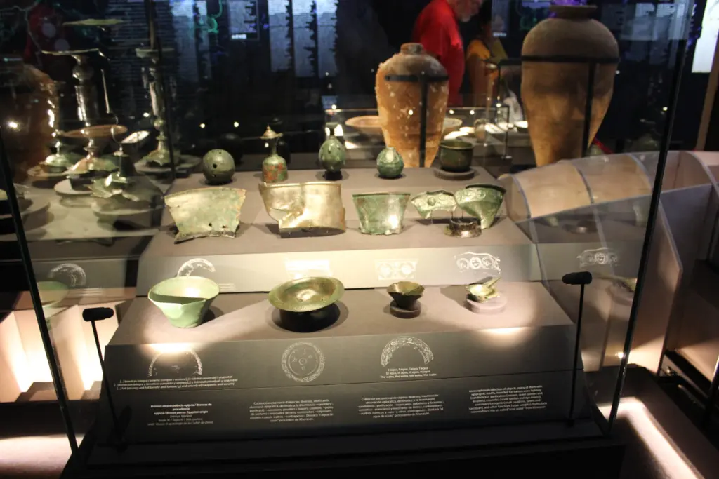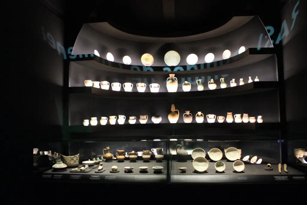 Dénia, arqueologia i museu reuneix més de 600 peces del llegat arqueològic de la ciutat que han estat seleccionades per la comissària de la mostra, l’arqueòloga Massu Sentí, i algunes de les quals mai havien estat exposades abans. Destaquen la col·lecció íntegra de bronzes islàmics de Daniya, així com peces procedents del MAN de Madrid, el museu de la catedral de València o el Louvre de París.