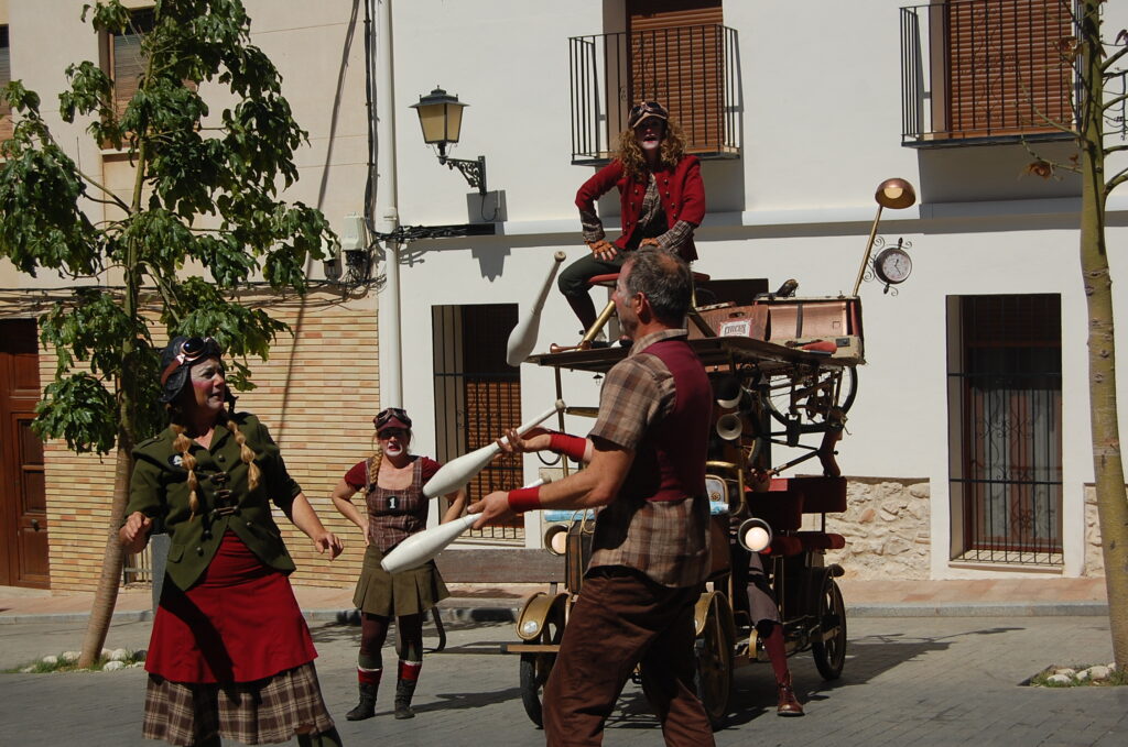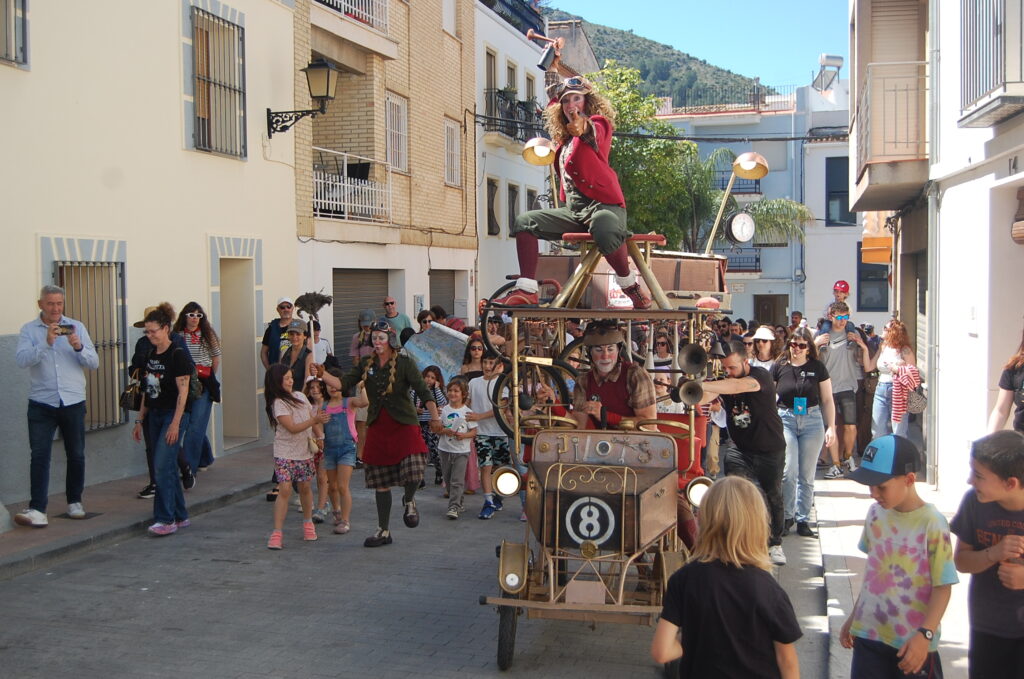 La caòtica comitiva, que ha acomboiat a grans i menuts, ha donat pas a la representació circense Sinergia street a l’escenari de la plaça de la Pilota en el que la companyia Nueveyuno ha posat en escena malabars, verticals i dansa amb música, escenografia, il·luminació i emocions. Tot això per a anar de la fusta al metall, de l’acústic a l’electrònic, del natural al complex, de la individualitat a la cohesió com a reinterpretació del renaixentista Leonardo da Vinci, com a proposta cap a una lliure reflexió sobre l’evolució i interacció emocional d’un grup.