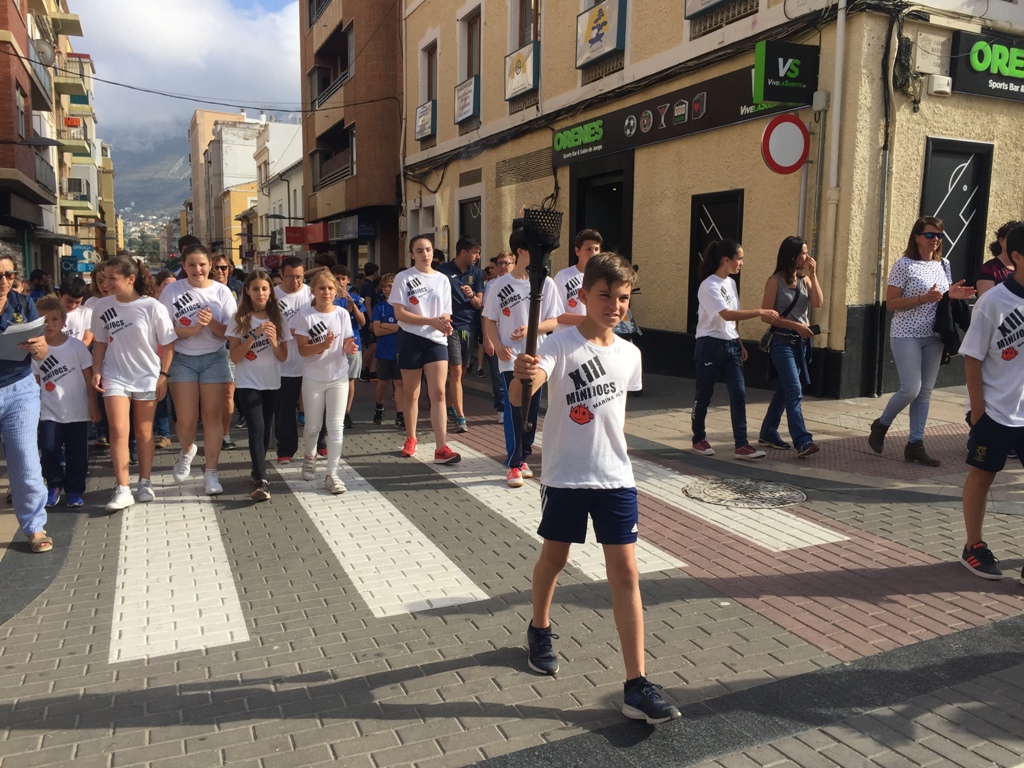 La torxa, que ha recorregut els pobles que participen en els Mini Jocs, ha arribat eaquest dimecres per la vesprada a Torrecremada on components de les Escoles Municipals de Dénia han recorregut els carrers de Dénia per a arribar a la Plaça del Consell on esperaven l'alcalde, el regidor d'Esports i diversos regidors de Dénia.
