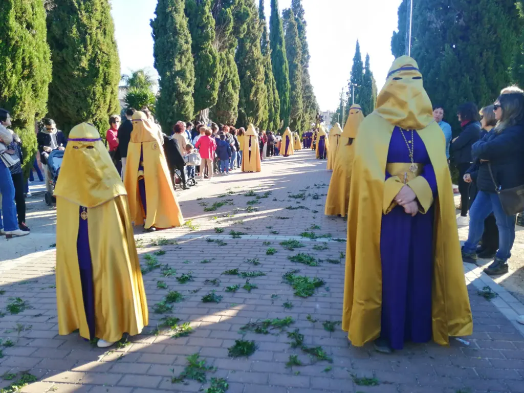 Totes elles, vestides per centenars de confrares, han acompanyat a les respectives imatges al so de tambors i cornetes e inclús d’alguna banda de música, per a configurar una experiència sensorial a les diferents processons. Experiència visual i sonora que s’ha ampliat als sentits de l’olfacte amb la flaire de la flor de taronger barrejada amb l’humida rosada de primavera la Pujada al Calvari de Divendres Sant. Acte que ha fet matinar a grans i menuts per a posar la plasticitat de la trencada de l’alba en el recorregut des del temple fins l’ermita de Sant Joaquim, per a recórrer les XIV estacions damunt d’una catifa de murta amb les imatges del Jesús Medinaceli, la Verge dels Dolors, la Verònica i el Nazareno, aquest últim amb una escolta de “caps de ferro” -figura típica de legionaris romans- a protagonitzar diferents encontres a l’anada i la tornada, entre les que ha emergit el sentit del gust amb el tradicional esmorzar de pastissos aportats per les confraries i que el costumari amb que els portadors reposen forces a mitat del trajecte i que el costumari local fa extensible als espectadors.