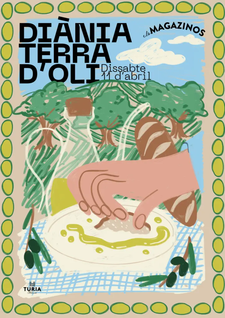 Els locals d’Els Magazinos, amb més de 20 propostes gastronòmiques, oferiran també durant la fira plats elaborats amb Olis de Diània. Enguany, l’organització ha tornat a confiar en la il·lustradora valenciana Àfrica Pitarch per a realitzar el cartell de la fira.