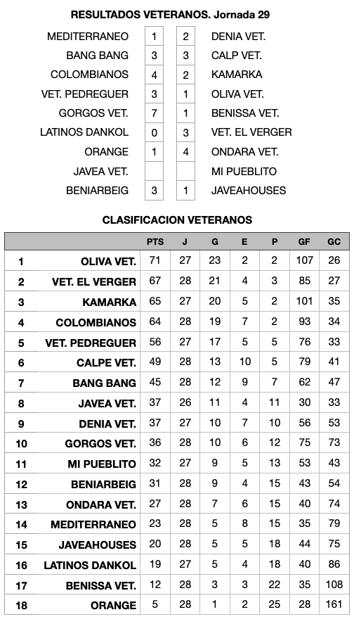 La vint-i-novena jornada ha deixat les segones derrotes de la temporada per a l’Oliva, líder, i el Kamarka, segon classificat, els dos grans favorits al títol, fet que estreta la classificació en la part alta.