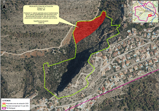La intervenció, executada sobre una superfície de poc més d’una hectàrea, ha comptat amb una subvenció de 13.915 euros corresponent a la convocatòria de 2025 per a actuacions vinculades a este pla. L’objectiu principal ha sigut reforçar la prevenció d’incendis mitjançant el manteniment de cultius que generen discontinuïtats en la vegetació i, al mateix temps, afavorixen la biodiversitat i servixen d’aliment per a la fauna.