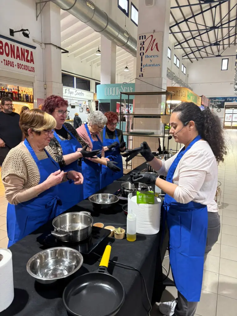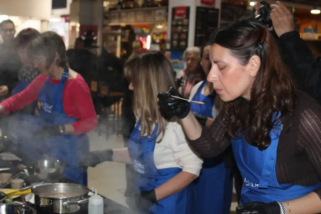 Tot un luxe per a les participants en els tallers i una experiència també enriquidora per a totes aquelles persones que no es van voler perdre un matí de cuina al cor del mercat, com remarcava la regidora Mª José Garcia.