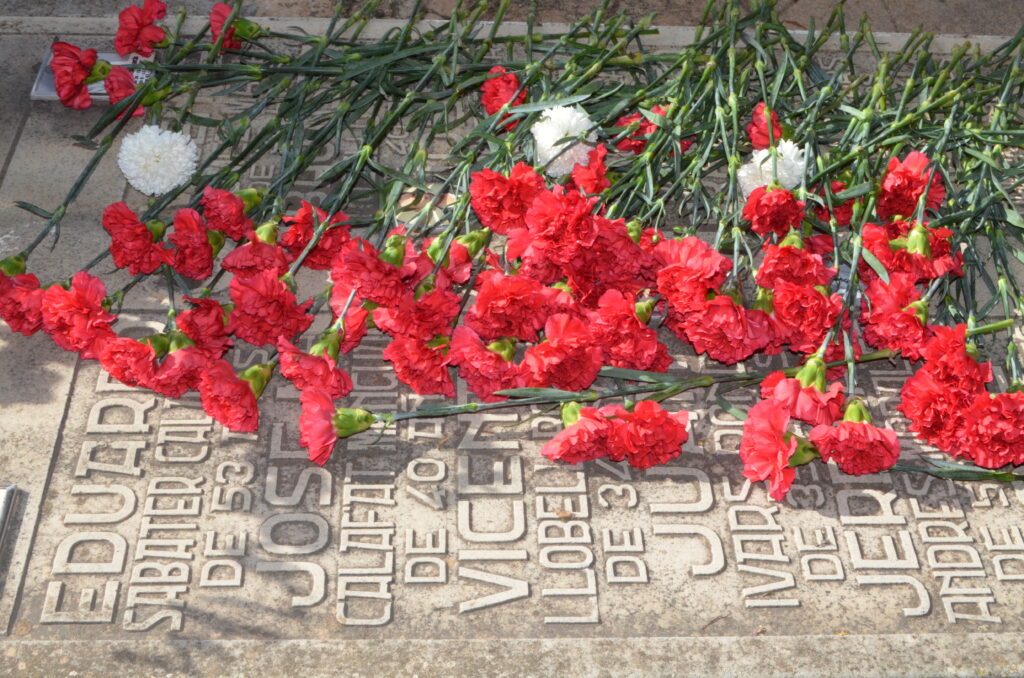 L’homenatge es va tancar amb l’ofrena de flors sobe la tomba on jeuen les restes d’alguns dels afusellats pel franquisme.