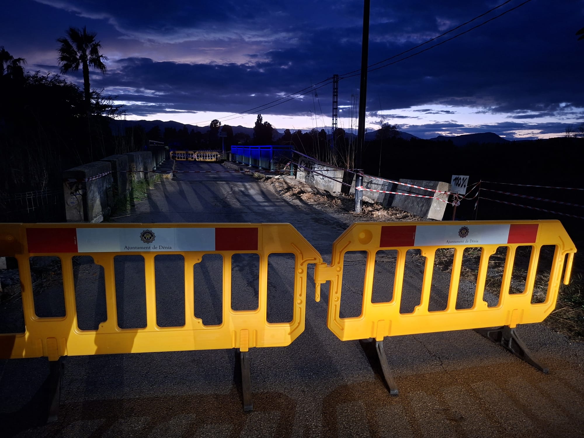 El deterioro del puente del Tollinero, que cruza el río Molinell, ha sido la causa que ha obligado a cerrarlo al tráfico y al paso de peatones. Lo ha avisado la Policía Local de Dénia tras comprobar que se encuentra muy deteriorada y que hay peligro. No hay fecha prevista para reanudar la circulación. La restricción ha encendido las alarmas sobre una posible paralización de larga duración, dada la falta de interés institucional previa en el mantenimiento de esta infraestructura. Los avisos por parte de los residentes de la zona se remontan a años atrás, pero la desidia administrativa ha marcado el destino final del puente.