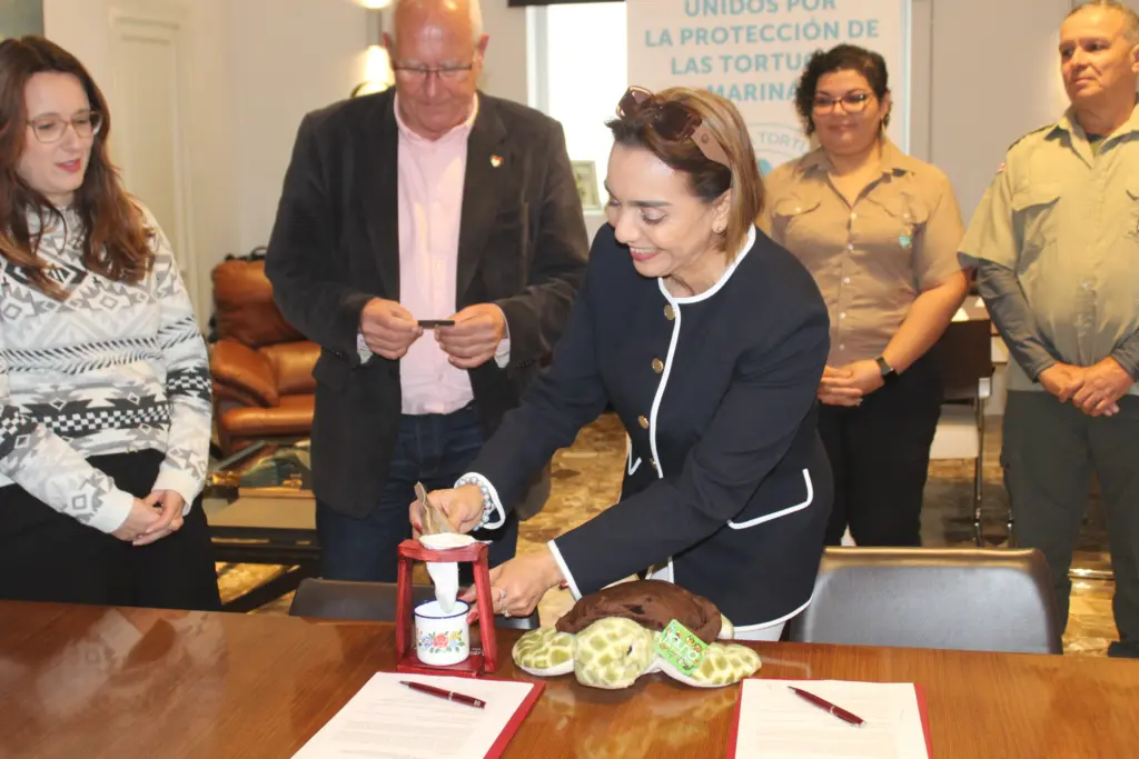 El alcalde de Dénia, Vicent Grimalt, y la directora ejecutiva de la Fundación de Parques Nacionales de Costa Rica, Madeleine Vargas, han firmado hoy la Alianza Tortuga, un acuerdo de cooperación institucional para la protección de las tortugas marinas que llegan a nuestras costas como consecuencia del cambio climático. “Una alianza entre dos lugares y dos mares, el Mediterráneo y el Caribe, que comparten una misma responsabilidad: proteger la vida”, ha subrayado la concejala de Transición Ecológica, Sandra Gertrúdix.