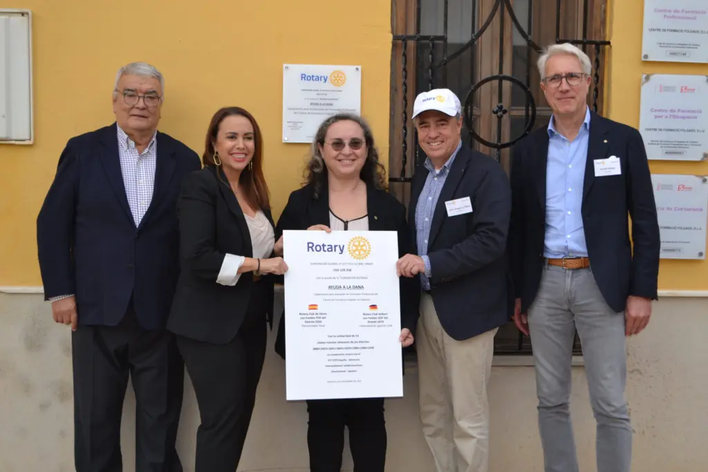 La colaboración internacional y el espíritu de servicio han devuelto la esperanza y la funcionalidad al Centro de Formación Folgado, gravemente dañado por las inundaciones del año pasado. Los clubes rotarios de Dénia y Velbert (Alemania) han impulsado la recuperación del centro con la concesión de una ayuda de superior a los 100.000 €. El dinero se ha canalizado a través de La Fundación Rotaria.