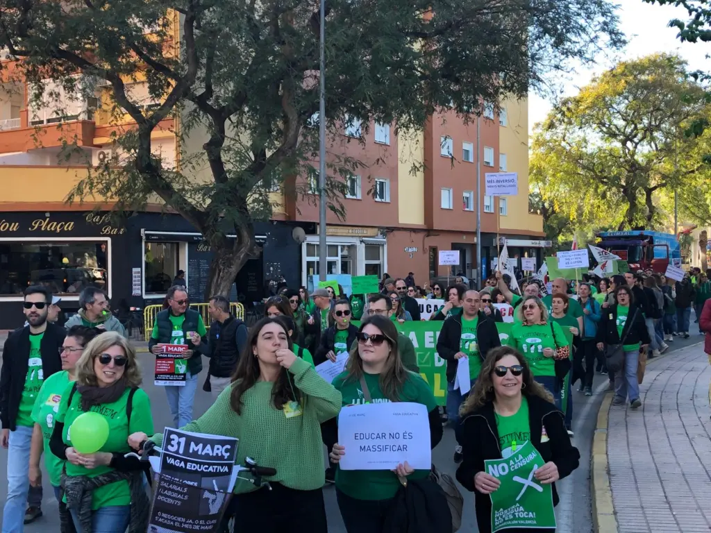 Desde primera hora del martes 31, una marea verde (el color de las camisetas del profesorado) recorrió varias calles de la ciudad, como la avenida de Valencia, a la altura del colegio Llebeig.