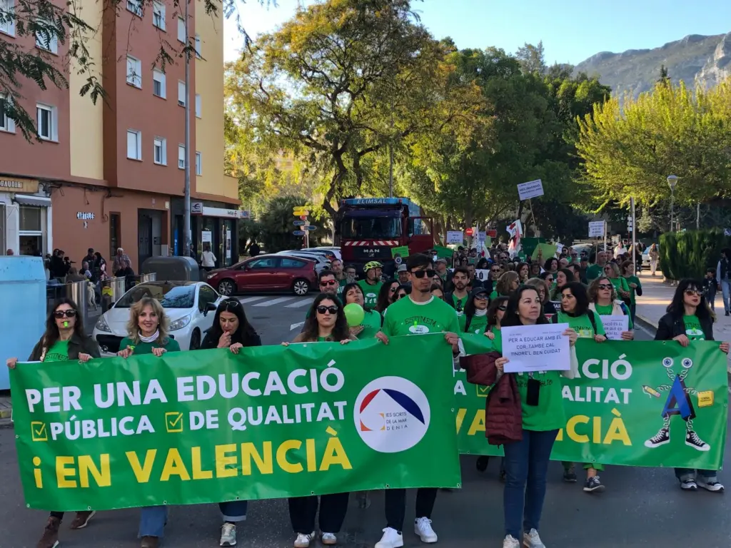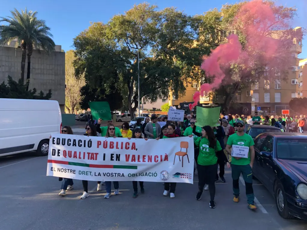 Cerca de 1.200 personas participaron en una manifestación realizada en la plaza de Jaume I. Con silbatos, consignas y megáfono en mano, los manifestantes expusieron sus reivindicaciones a través de pancartas en las que se leían mensajes como ‘La vocació no ho pot sostenir tot’, ‘l’educació pública és el cor del poble’. o ‘Educación pública, de qualitat i en valencià. El nostre dret, la vostra obligació’.