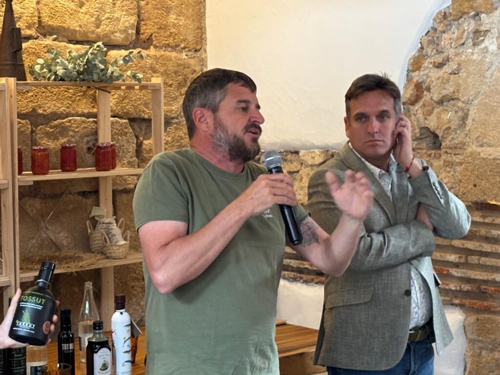 Cabrera sostiene que el aceite se ha convertido en un elemento socializador, como el vino. También remite a los asistentes al vino Héctor Carrió, que echa mano del refranero popular para afirmar que ‘l’oli i el vi, remei diví’. Porque Tossut Agroecologia Sostenible, además de aceite, elabora vino. Carrió fue a la feria de Els Magazinos a hablar de aceites y allí presentó el Verí, el aceite de la variedad alfafarenca con el que acaba de ganar el permio al mejor monovarietal en el Concurso de aceite virgen extra de las comarcas meridionales valencianas, celebrado en Alfafara.