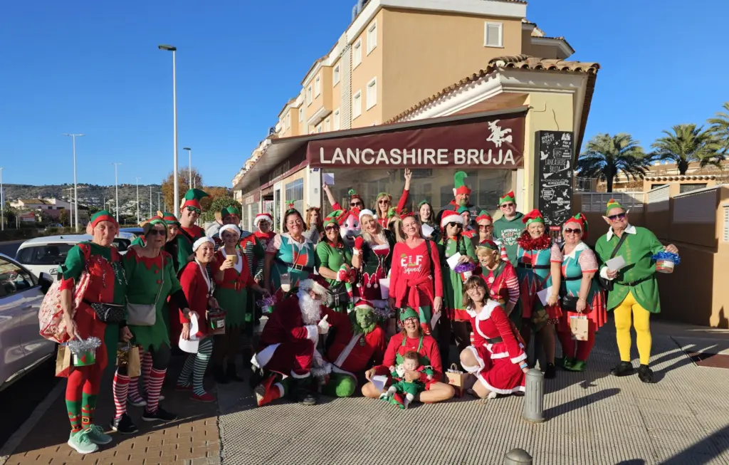 El bar Lancashire Bruja de Xàbia organizo una nueva edición de su tradicional evento solidario navideño “Elf Run”, una carrera festiva en la que vecinos y residentes, vestidos de elfos, recorrieron distintos establecimientos del Arenal para recaudar fondos a favor del Colegio de Educación Especial Raquel Paya de Dénia.