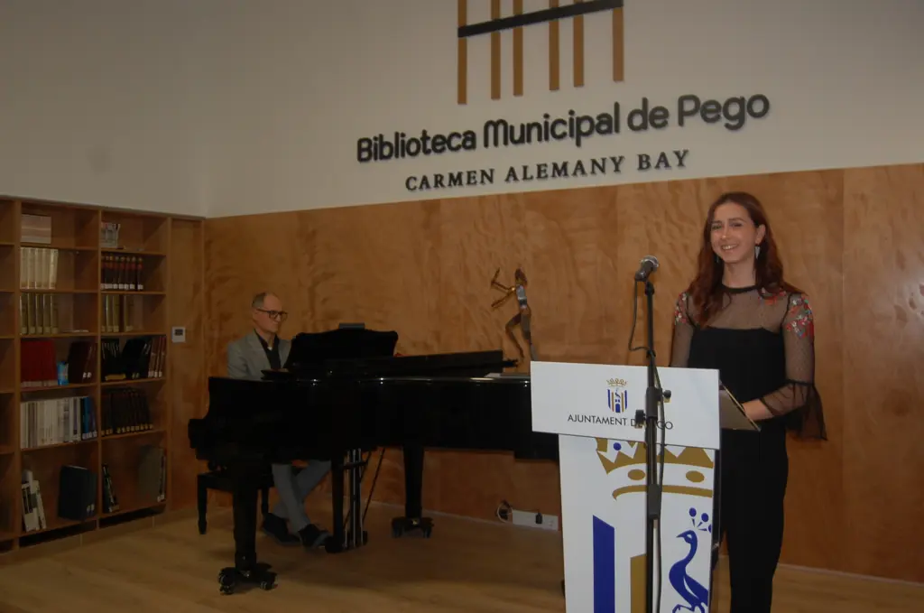 La emotiva ceremonia, ambientada por la música de Ferran Ferrando al piano, tuvo como escenario el salón principal de la Biblioteca Municipal Carmen Alemany, donde se congregaron más de un centenar de pegolinos para homenajear a una de sus vecinas que ha convertido, por méritos propios, las creaciones vanguardistas en una referencia en el mundo del arte.