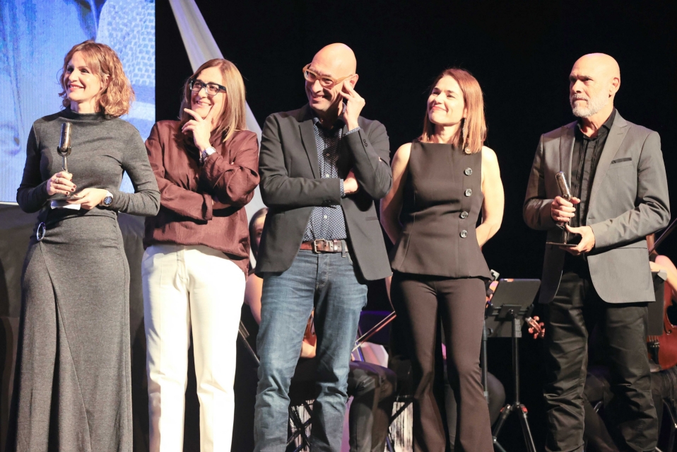 El primer tramo de la gala celebró el galardón Décimo Aniversario Dénia Ciudad UNESCO Creativa de la Gastronomía, entregado por el alcalde Vicent Grimalt al CEE Raquel Payà, el CEIP Pou de la Muntanya, el IES Maria Ibars y el CIPFP Dénia. Representantes del alumnado y profesorado de estos centros intervinieron para agradecer un reconocimiento que pone en valor su implicación educativa y su compromiso con la ciudad. A continuación, se entregaron los premios de Promoción Turística a Marco Miquel y el galardón en el apartado Festivo a la Comissió de Festes del carrer Santíssima Trinitat, cuya presidenta, Isabel Gallego, y la secretaria, Esther Sapena, recogieron la estatuilla del escultor de Xàbia Toni Marí.