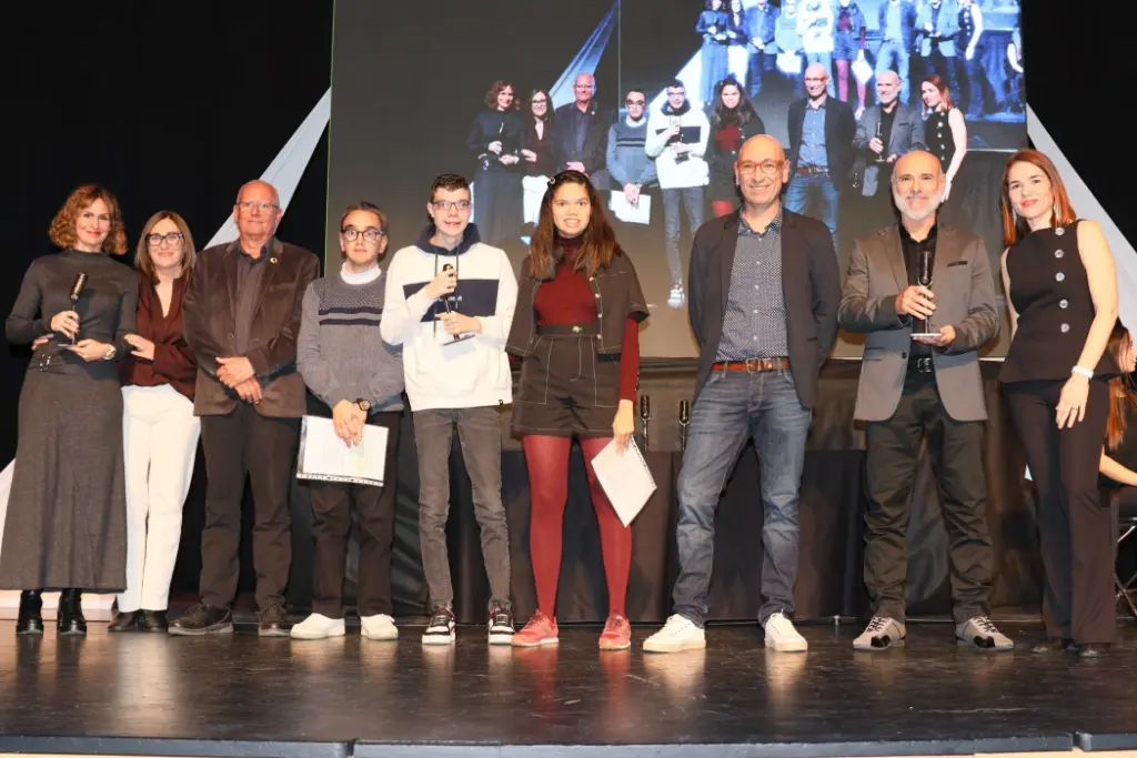 La recta final de la gala estuvo dedicada a los últimos reconocimientos. El premio en Sociedad recayó en el fotógrafo Tino Calvo, que se definió como un apasionado de la fotografía, y que ademas estuvo vinculado al mundo del cine y al histórico cine La Rosaleda de Dénia. El Centro Comercial Portal de la Marina recibió el Premio Especial Pepe Miralles, recogido por su directora, Virginia Carrasco. En el ámbito deportivo, Javier Zamora agradeció el galardón poniendo en valor la importancia real del deporte en la agenda institucional. El acto concluyó con la entrega del premio en Cultura a Antonia Díaz, anunciada por el actor Óscar Lasarte mediante videollamada. Díaz protagonizó junto a sus alumnos uno de los momentos más emotivos y reivindicativos de la noche al reclamar un auditorio digno para Dénia, entregando simbólicamente un ladrillo al alcalde Vicent Grimalt para iniciar su construcción y otro a Jordi Monsonís para que la radio siga dando voz a esta demanda.