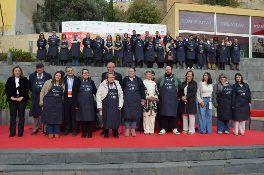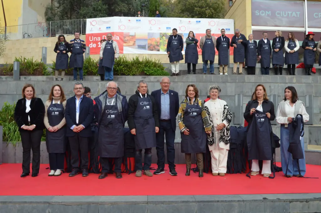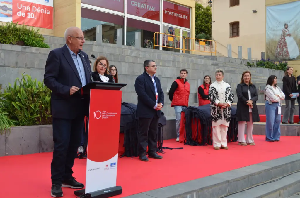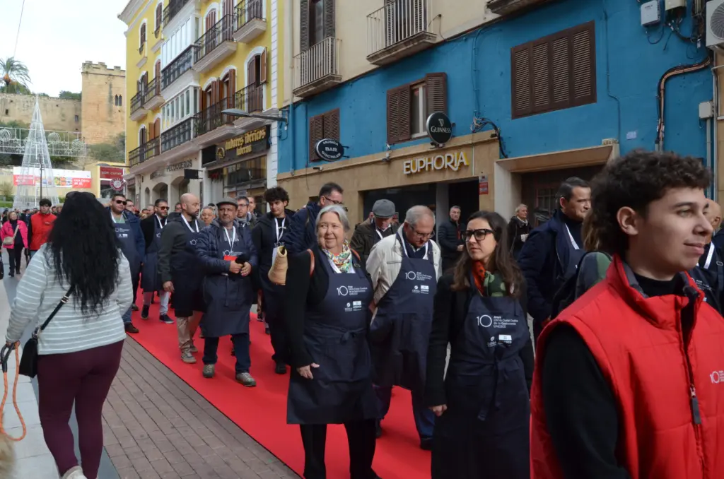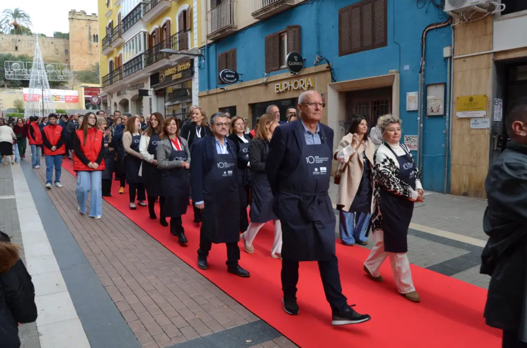 La jornada comenzó con un acto institucional en la plaza del Consell, donde se realizó la entrega de delantales conmemorativos a representantes del sector gastronómico, productores locales, entidades colaboradoras e instituciones públicas y privadas que han impulsado el proyecto Dénia Ciudad Creativa de la Gastronomía. Este gesto simbólico destacó el valor del trabajo conjunto en la última década.