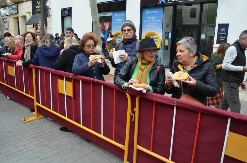 La fiesta continuó con una degustación gratuita de 5.000 cocas, elaboradas por hornos y obradores locales, ofreciendo una muestra del rico patrimonio gastronómico de Dénia y la Marina Alta. La mañana estuvo animada con música y actividades que hicieron de la gastronomía y la cultura las protagonistas de este encuentro festivo y participativo.