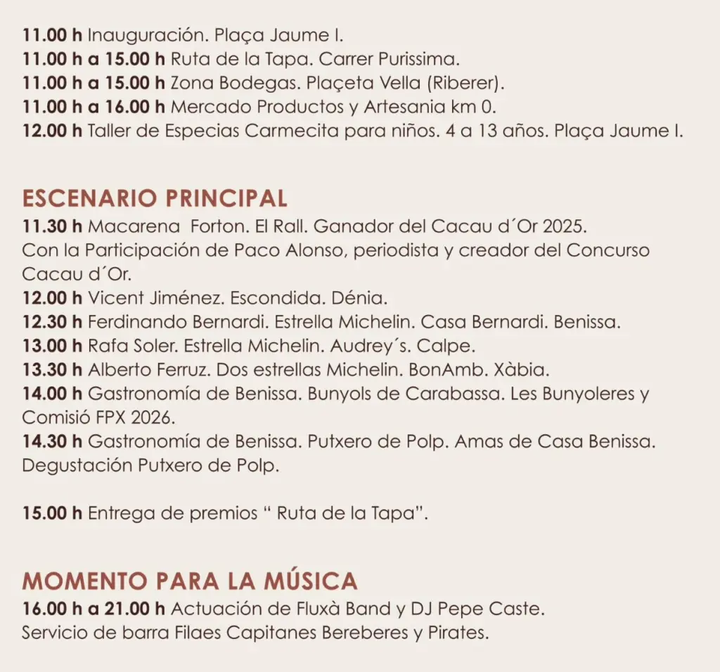 “Essència” aspira a convertir la gastronomía en motor cultural, social y económico, dinamizar el comercio y reforzar la marca de Benissa como referente gastronómico, poniendo en valor el producto de kilómetro cero. Tal como destacó el alcalde, Arturo Poquet, esta cita es “más que un evento: es comunidad, es orgullo y es territorio”.