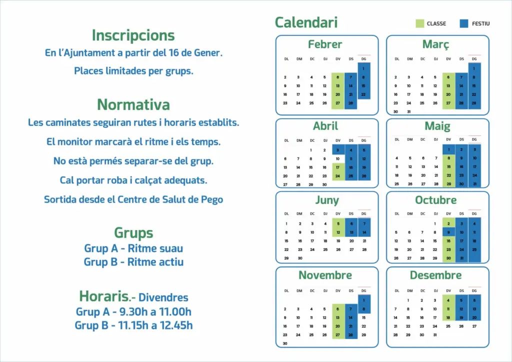 El técnico coordinador del departamento de Deportes, Josep Llorca, ha destacado que «en este proyecto se han incorporado criterios de diseño de recorridos que garantizan la seguridad, la señalización, la inclusión y la puesta en valor del patrimonio natural y cultural de Pego». Además, ha subrayado los beneficios de caminar en grupo, ya que, según resalta, «incrementa el compromiso, la adherencia a la actividad y reduce la sensación de soledad, especialmente en personas mayores o con enfermedades crónicas».