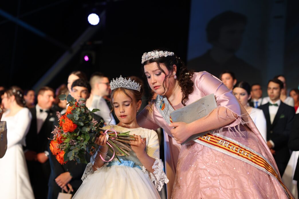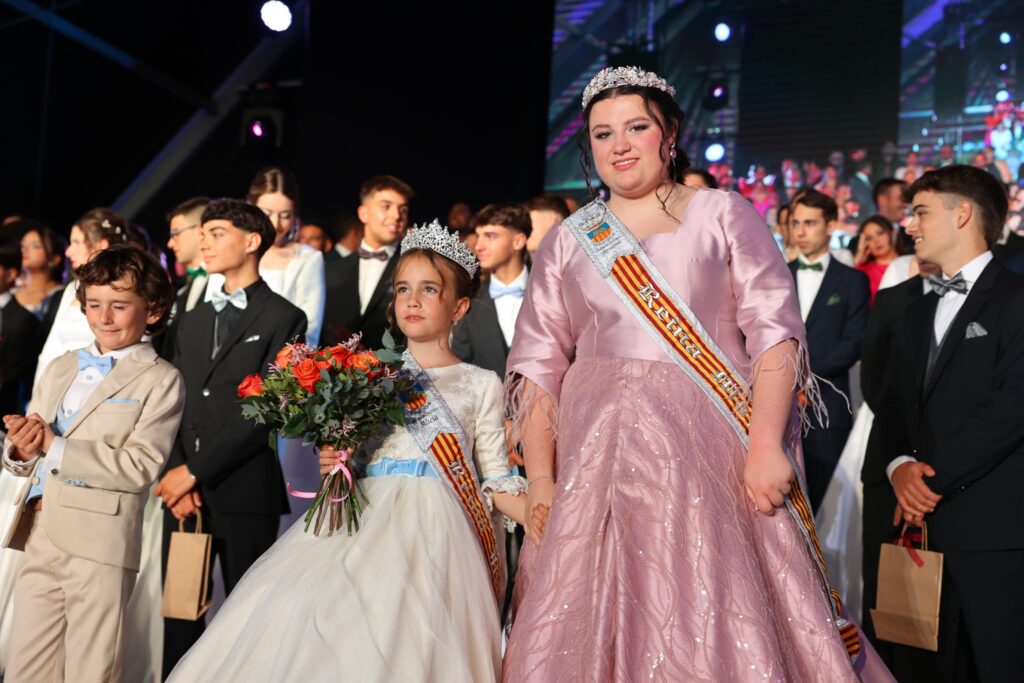 Alicia Arenas, reina infantil, y Ariana Bisquert, reina mayor, estrenaron su reinado en una noche muy especial, cargada de emoción y marcada por el recuerdo de Gema Crespo, la joven festera que falleció hace apenas unas semanas.
