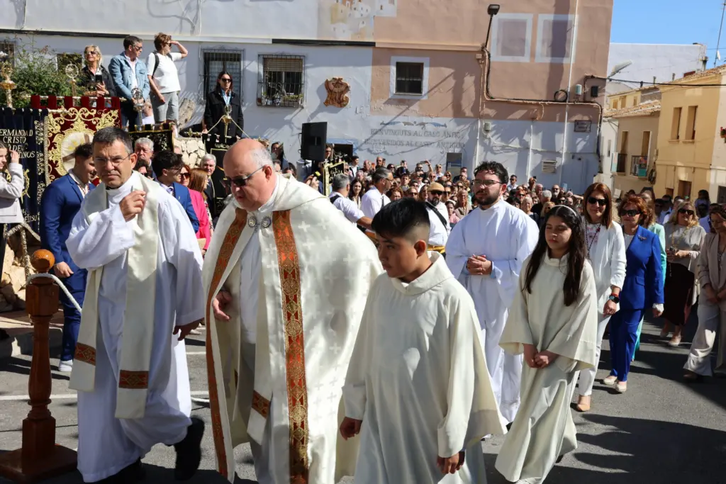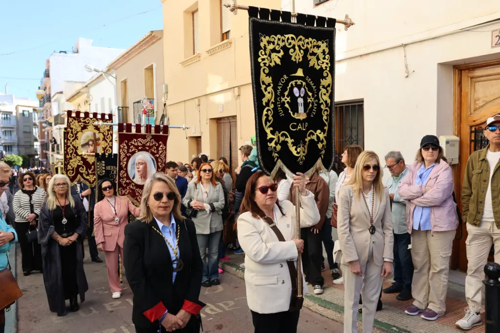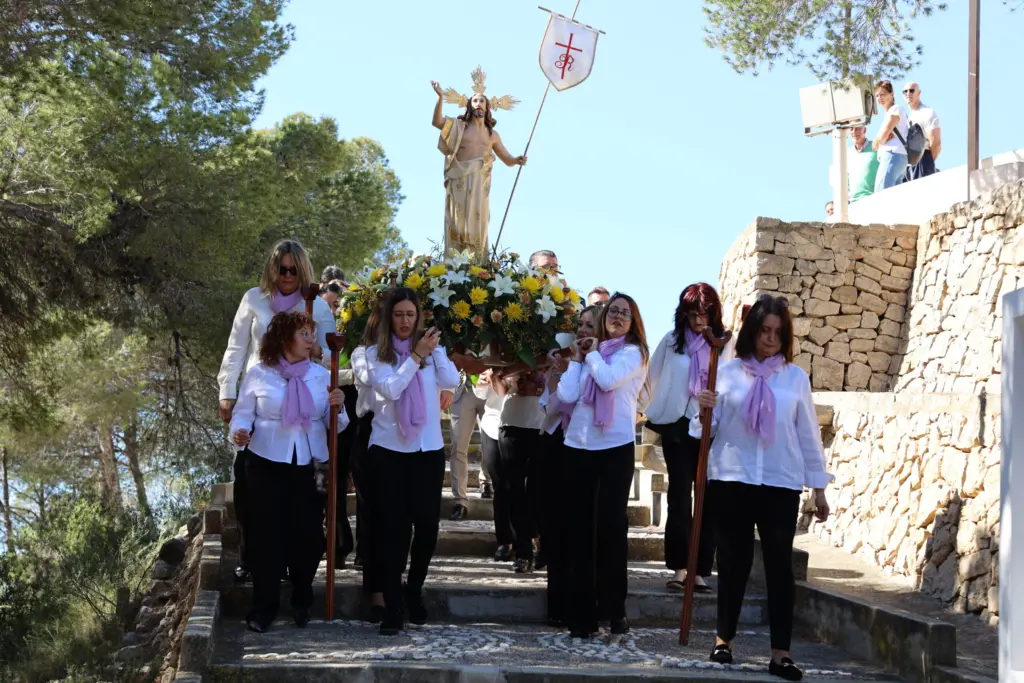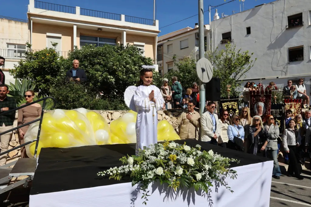 El encuentro entre la Virgen María y Jesucristo, su hijo resucitado, ha puesto el broche de oro este domingo a las celebraciones de la Semana Santa en Calp. Especialmente emocionante ha sido el momento que ha tenido lugar en la plaza del Salvador, con el anuncio por parte del “ángel” de este encuentro, que ha sido seguido por la comunidad festera y numerosos vecinos y curiosos.