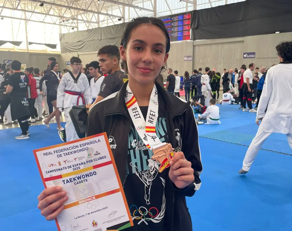 La calpina Lilia Mobtil se ha convertido en la gran protagonista del Club de Taekwondo Athenea en este fin de semana al conquistar una medalla de bronce en el Campeonato de España de Taekwondo por Clubes, el mayor evento nacional de esta disciplina. Su excelente rendimiento la llevó a encadenar tres victorias consecutivas hasta alcanzar las semifinales, donde se enfrentó a una rival con experiencia internacional. A pesar de caer en ese combate, Mobtil firmó una actuación impecable que marca un hito histórico para el club: su primera medalla nacional.