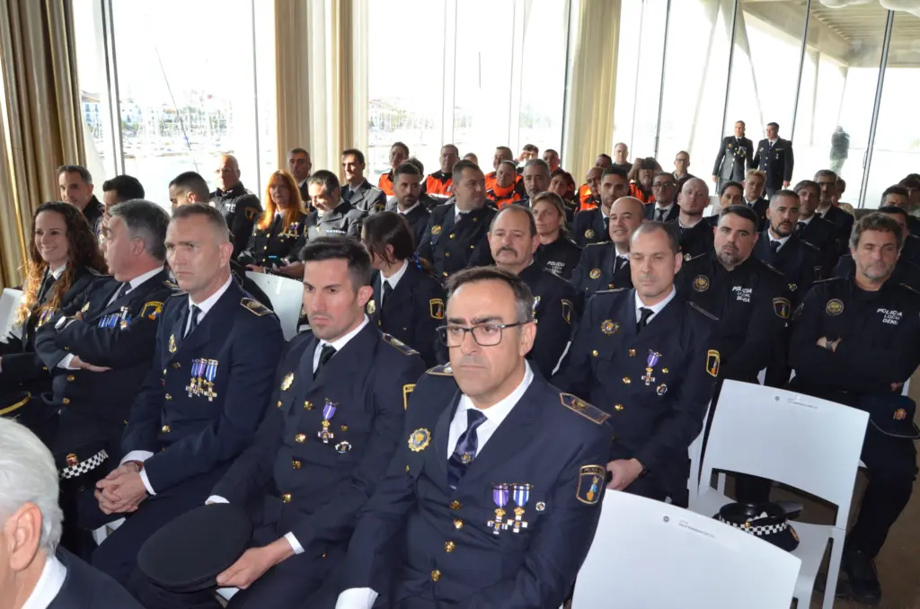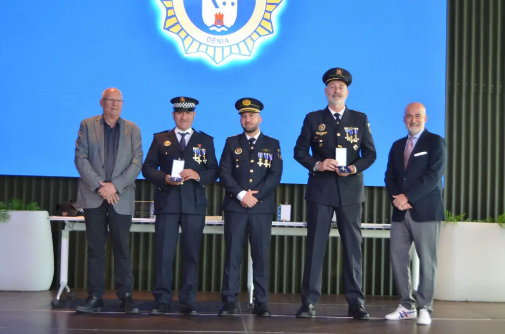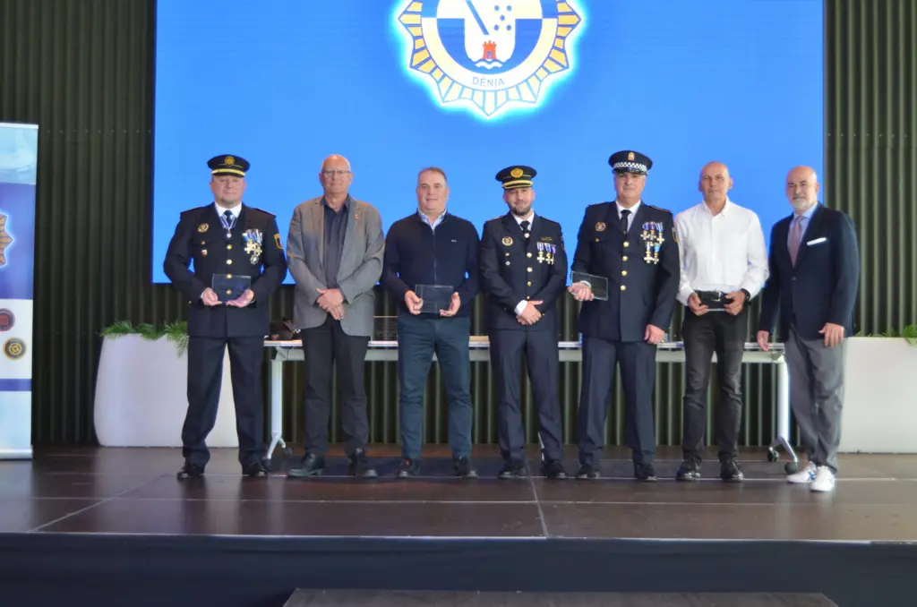 El desastre ocasionado por la Dana en los municipios valencianos en octubre de 2024 ha estado muy presente en el acto. La mención a los ochenta policías locales de Dénia a quienes el Ajuntament de Dénia ha concedido la cruz al mérito profesional por prestar servicio, de manera desinteresada, en las poblaciones afectadas. Estos mandos y agentes iban a recibir hoy las distinciones, en un acto previo al aire libre, pero la inestabilidad meteorológica que amenazaba con deslucir el homenaje ha obligado a aplazarlo.