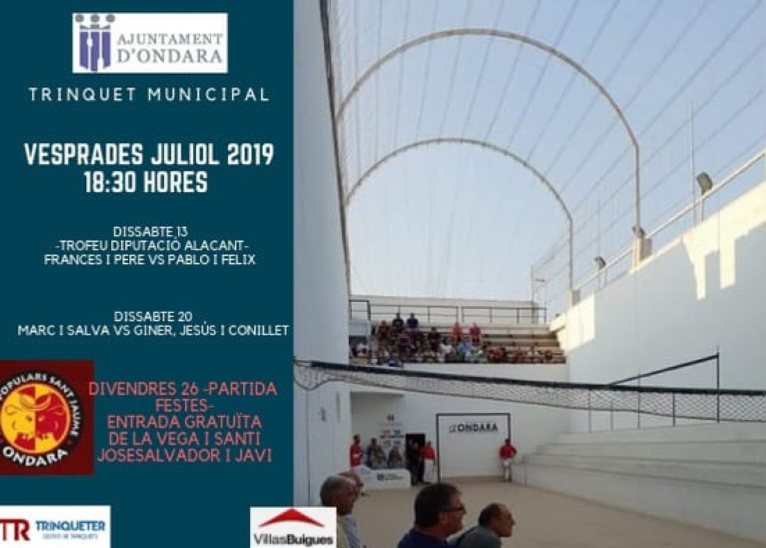 El trinquete municipal de Ondara tiene previsto organizado tres partidas de jugadores profesionales de eescala i corda durante el más de julio para profundizar en la dinámica que, desde hace tres veranos, se ha llevado a cabo desde el Ayuntamiento para conseguir más dinamismo en esta instalación deportiva, según han subrayado el alcalde, José Ramiro, y la concejala de Deportes, Mar Chesa.