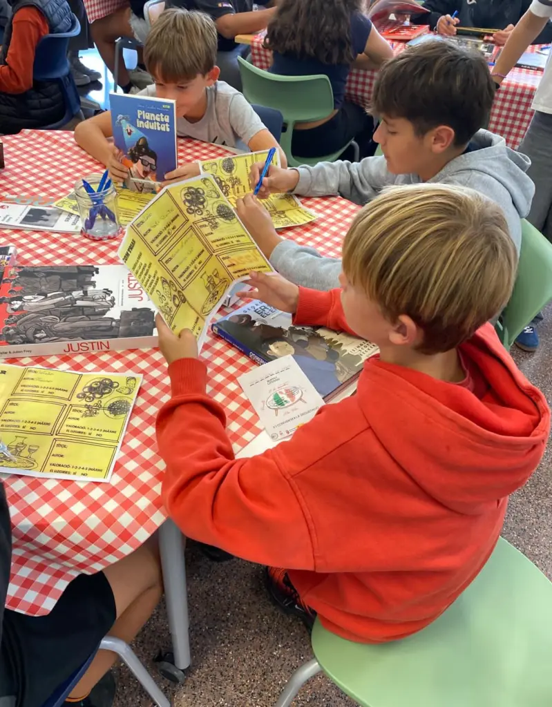 Este buffet está dirigido al alumnado de primero de ESO. Es, por decirlo de otro modo, un servicio de préstamo donde los socios pueden elegir entre un buen puñado de libros, más de noventa, que están repartidos por cinco mesas. Tienen 15 minutos para registrar e investigar y después tienen que pasar a otra mesa. Si les ha gustado alguna propuesta de lectura, después tienen que llenar una ficha donde dan su valoración y si quieren leerla o no.