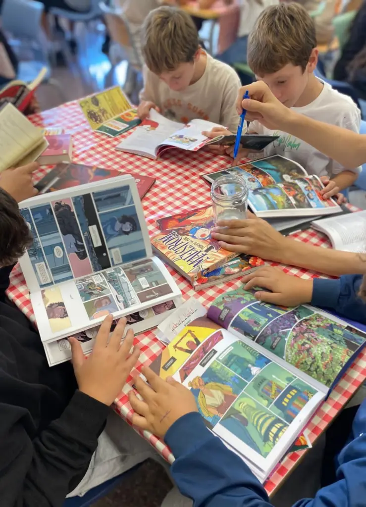 En la hora del patio tiene lugar el Club de Lectura que cuenta con 23 jóvenes voluntarios, todo un éxito. Todos leen un mismo libro, ahora La Ecuación del primero beso, de Daniel Hernández Cárceles, que mezcla romance, misterio y aventura con las matemáticas como eje central. Y en cada sesión se hace una puesta en común para habla de los personajes, la trama, qué es el que más te gusta, etc. Y en el Patio Literario se escoge un libro y después uno de los participantes hace una exposición. Se harán también tertulias literarias a través de la IborRàdio.