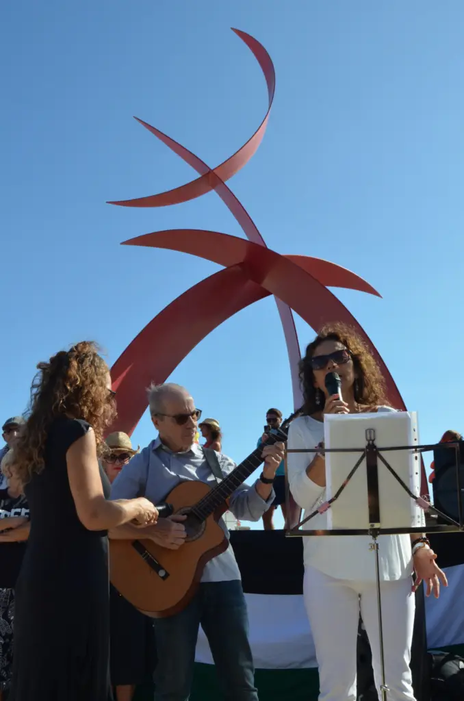 Durante la concentración se ha interpretado una canción tradicional valenciana de duelo y el tema Solo le pido a Dios, coreado por el público. Se han lanzado también ‘viva’ a los 44 barcos que han formado parte de la Flotilla Global Sumud. Los activistas que iban a bordo “han roto la resignación en todo el planeta” y además, se ha subrayado en los parlamentos, “han salvado uno de los valores esenciales del ser humano, el humanitarismo”.