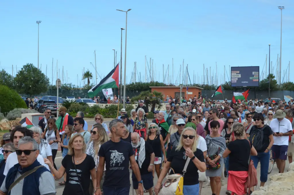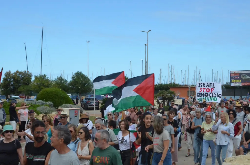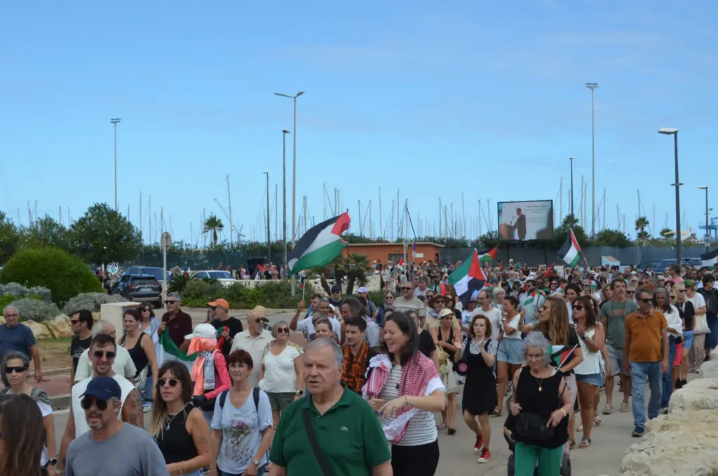 Cientos de personas -entre 400 y 500 según los cálculos de la Policía Nacional- se han hecho a la calle en la Marina Alta para protestar contra la matanza de que está siendo objeto el pueblo palestino. Números al margen, la concentración y la manifestación convocadas en Dénia han sido reflejo del rechazo a los planes del gobierno sionista de Benjamin Netanyahu, el primer ministro israelí, y el exterminio de la población palestina de la franja de Gaza. “Las guerras no solucionan conflictos”, decía el artista Joan Castejón en un acto que ha pedido también el boicot a los productos de empresas que apoyan la ocupación israelí.