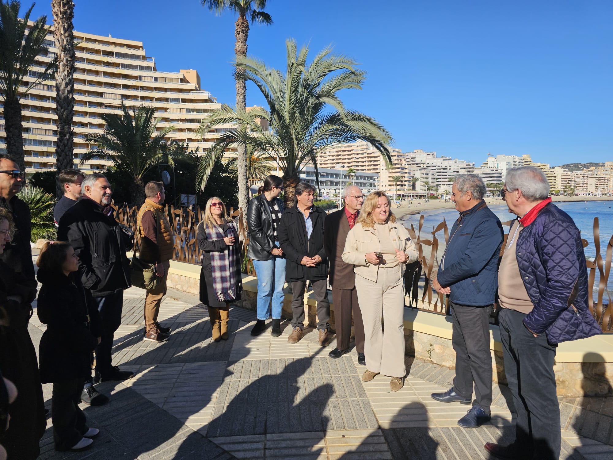 La obra, diseñada y confeccionada en hierro galvanizado por el escultor de Xàbia Toni Marí, ha sido instalada junto al murete situado al final de la calle Castelló, un enclave privilegiado desde el que se contemplan vistas de la playa de la Fossa. La inauguración ha estado presidida por la alcaldesa de Calp, Ana Sala.