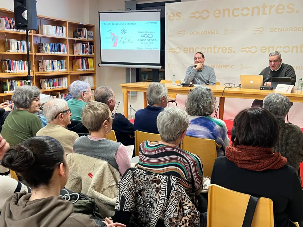 El periodista y escritor Joaquim Vilarnau ha inaugurado los Encontres a Beniarbeig 2026 con la conferencia titulada «Cuando la canción encuentra la literatura», dentro de un ciclo que este año está dedicado al tema genérico de Música y Literatura.